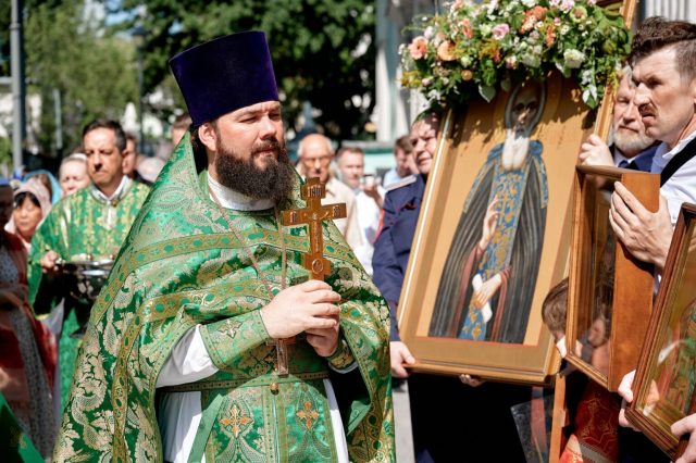 По традиции Литургия завершилась крестным ходом вокруг храма. Верующие пронесли хоругви и храмовые святыни, включая иконы прп. Сергия Радонежского. Затем настоятель храма, иерей Тимофей Чайкин, обратился к молящимся с проповедью. Священник подчеркнул особое значение преподобного Сергия для нашей страны и ту глубокую любовь, которую русские люди питают к Игумену земли Русской. Также отец Тимофей поздравил алтарника Сергия с днем тезоименитства.
