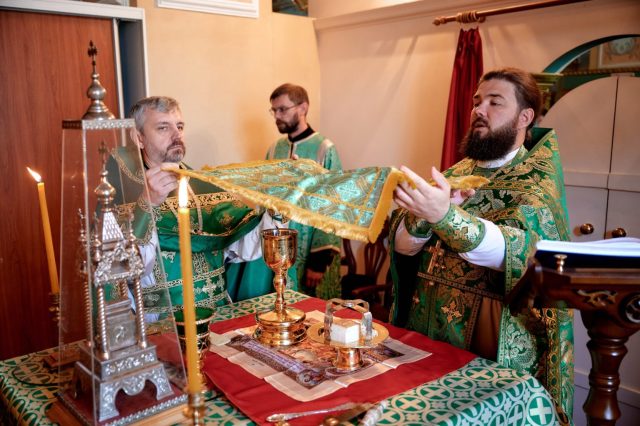 Богослужение возглавил настоятель храма, иерей Тимофей Чайкин, в сослужении протоиерея Олега Корытко, иерея Тихона Лазуткина и диакона Николая Арзуманова. Богослужебные песнопения исполнил хор под управлением регента Юлии Зыковой.