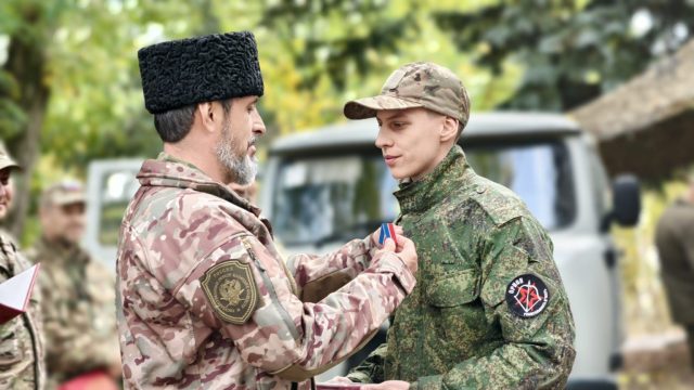 Всероссийский атаман Виталий Кузнецов выразил казакам слова благодарности за их отвагу и ратный труд и наградил особо отличившихся бойцов медалями Всероссийского казачьего общества.