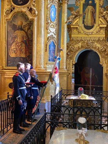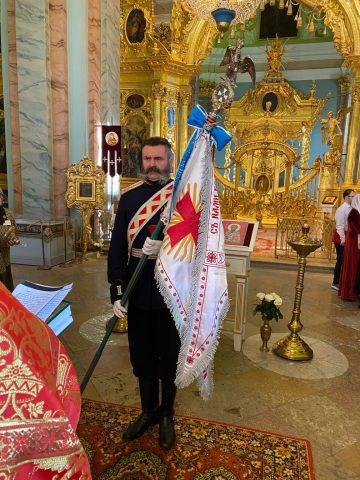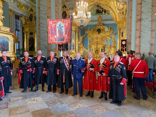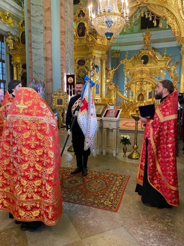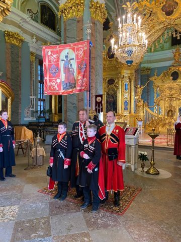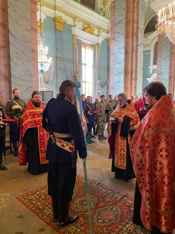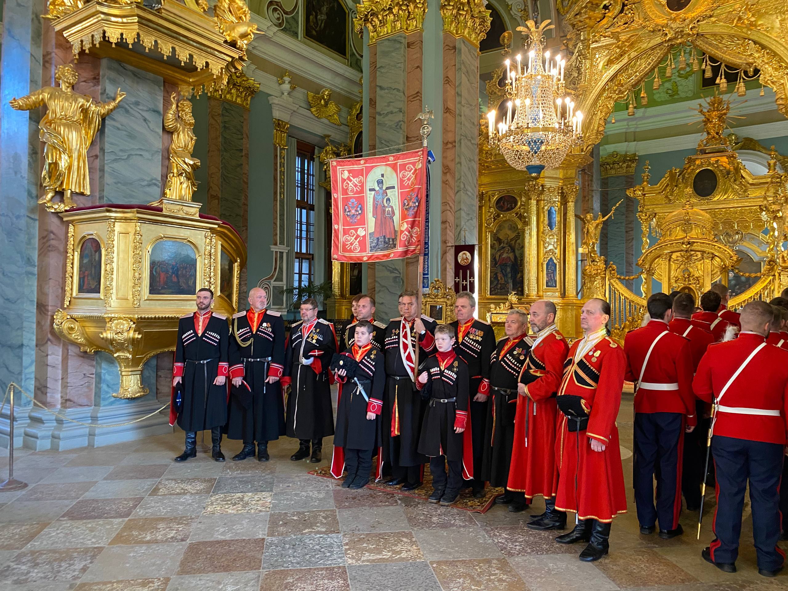 Праздник начался с торжественного молебна в Петропавловском соборе, который возглавил настоятель храма священномученика Иерофея при лейб-гвардии Казачьих частях иерей Алексий Егоров. Ему сослужили иерей Тимофей Чайкин и духовенство собора. Во время богослужения был освящен юбилейный штандарт Петербургского Лейб-Гвардии Казачьего дивизиона.