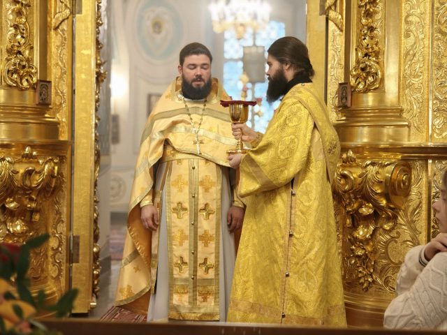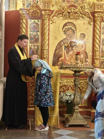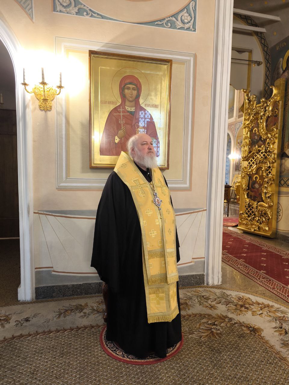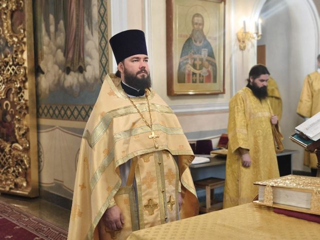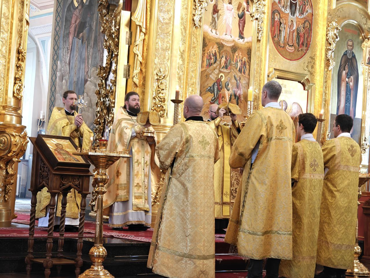 Богослужение возглавил настоятель храма иерей Тимофей Чайкин. Ему сослужили иерей Владимир Зимонов, протодиакон Серафим Дубанов и иеродиакон Антоний (Сердюков).