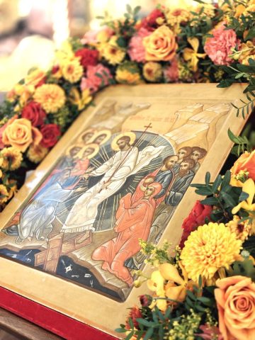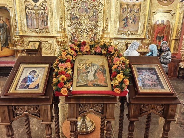 По окончании литургии было совершено славление Пресвятой Богородице перед ее чтимым Иверским образом.