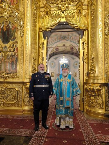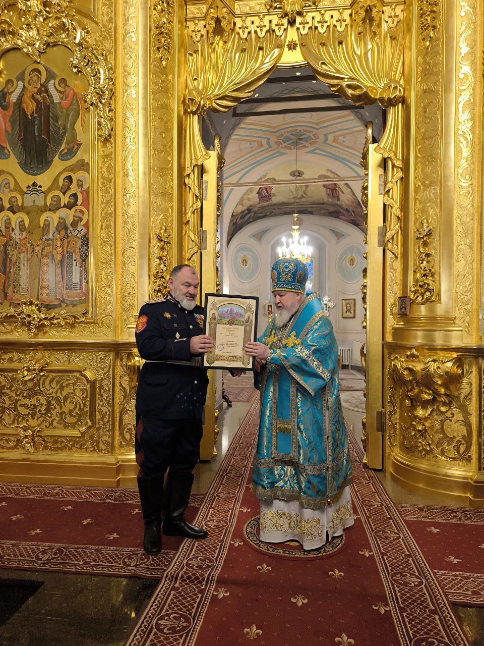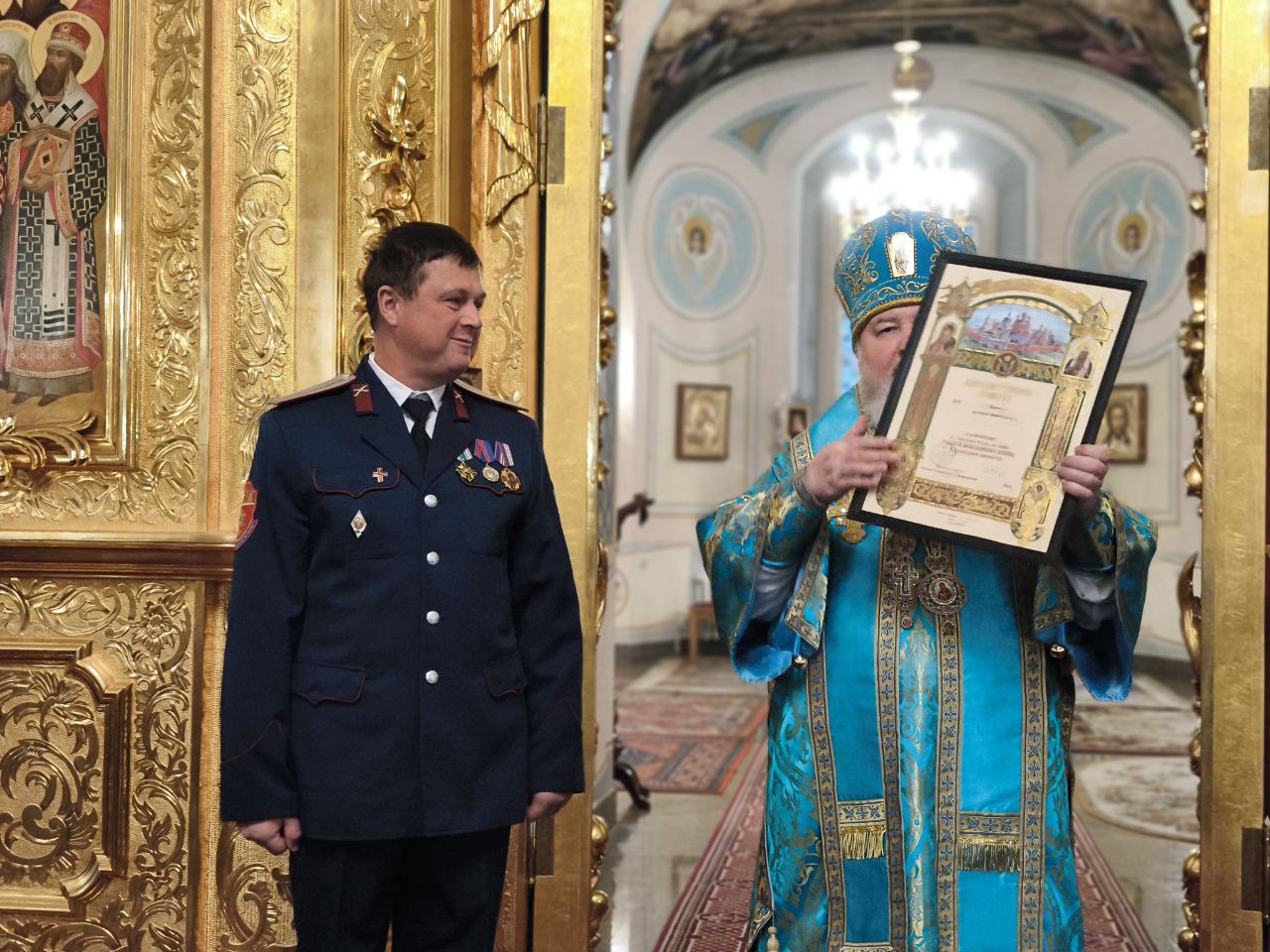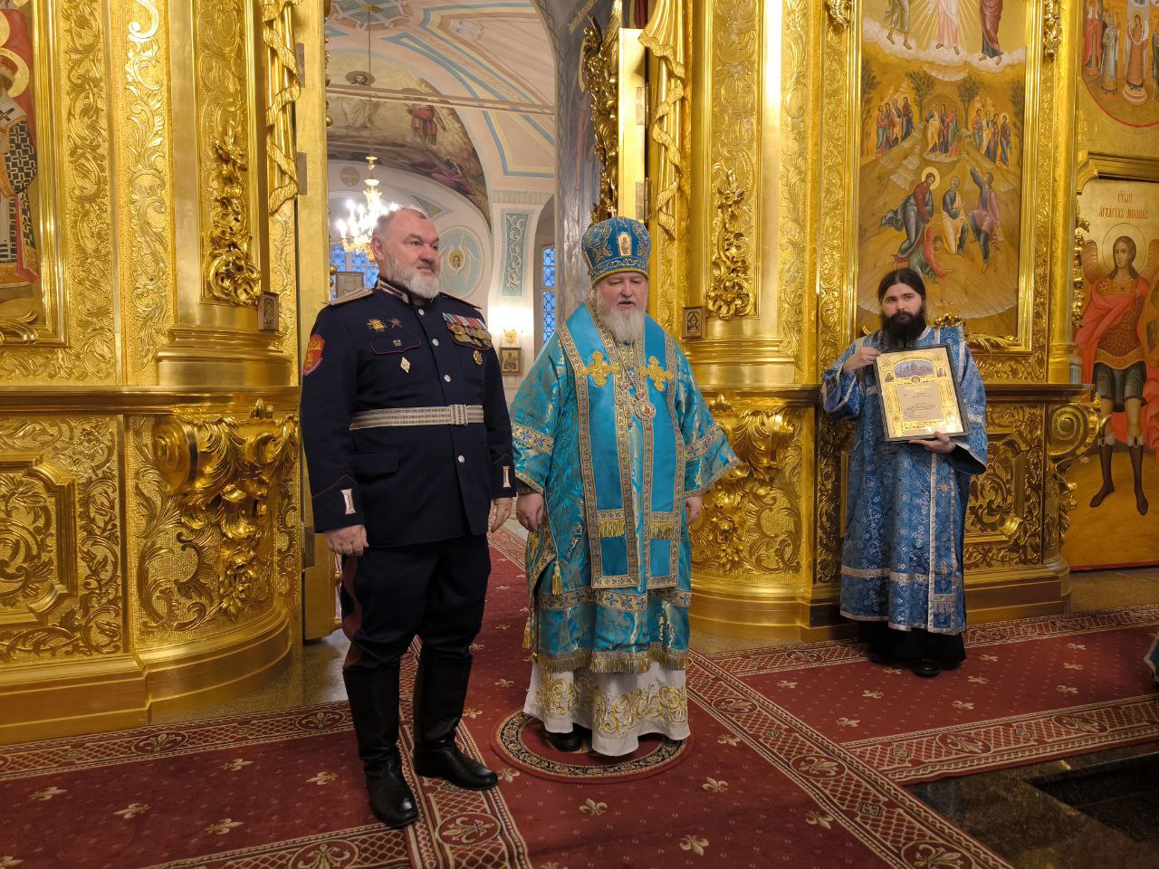 Также митрополит Кирилл наградил казаков Дмитрия Андреенко и Артура Цапенко грамотами Синодального комитета за труды на благо Церкви и казачества.