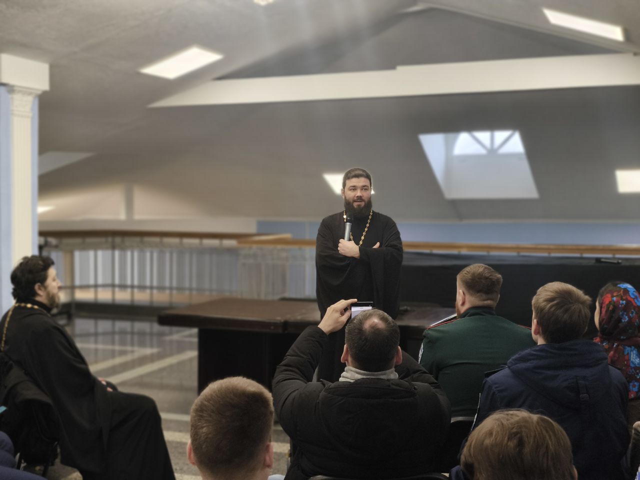 После богослужения состоялась экскурсия по храмовому комплексу и встреча с настоятелем храма, ответственным секретарем Синодального комитета по взаимодействию с казачеством иереем Тимофеем Чайкиным. Священник рассказал молодым казакам о важности регулярного участия в Таинствах Святой Церкви, соблюдении Заповедей Божиих и значении православной веры для казака.