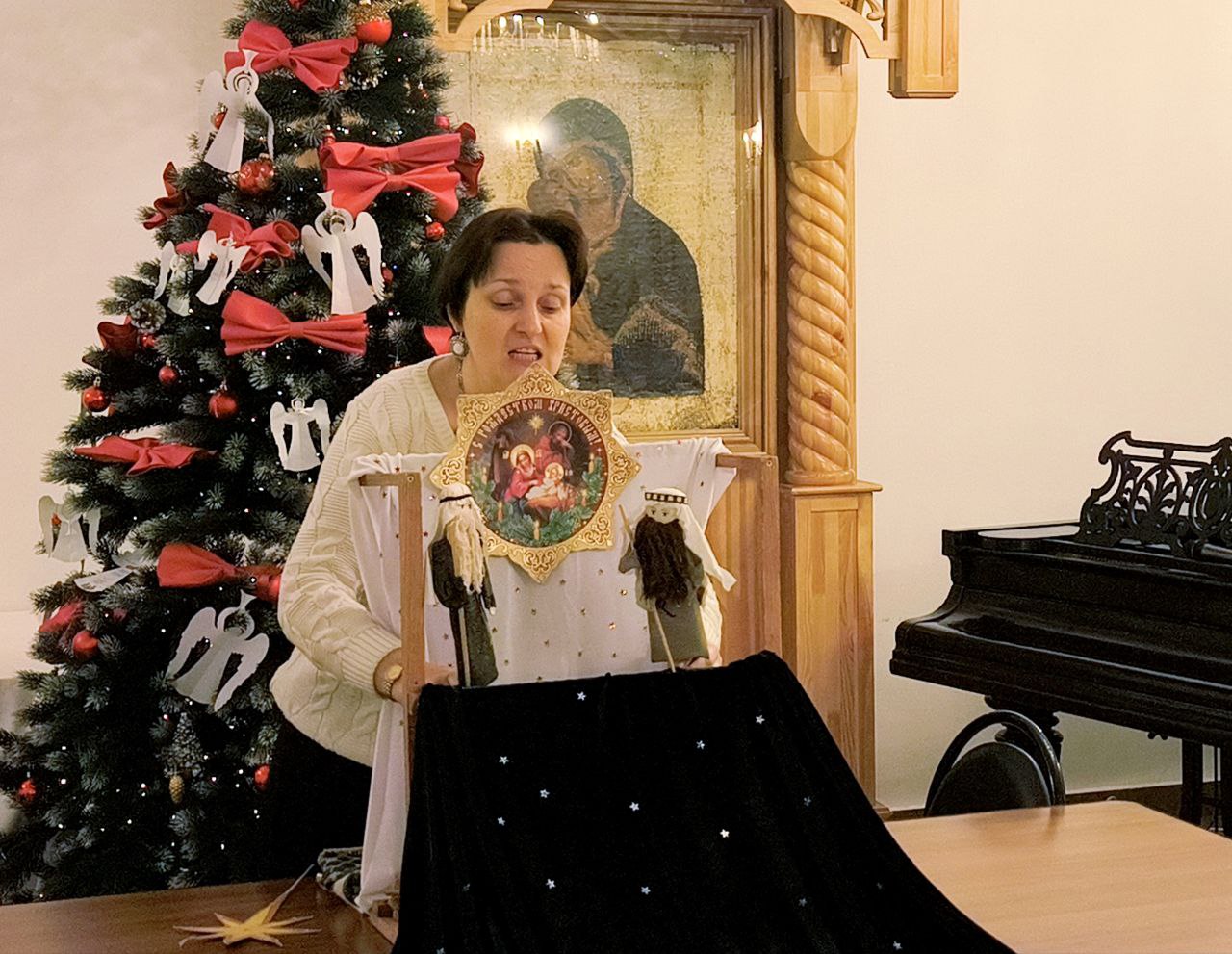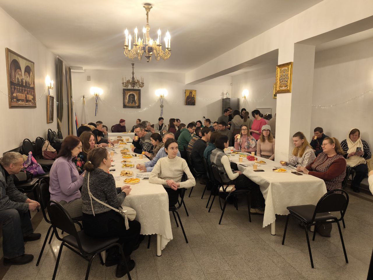 После молитвы состоялась встреча священника с молодежью храма в трапезной. Специально для участников молебна Цветана Косырева представила авторское кукольное представление на тему Рождества Христова. Также прозвучали различные музыкальное номера, участники прочитали стихи, в том числе собственного авторства, а также поделились историями из жизни и наблюдениями.