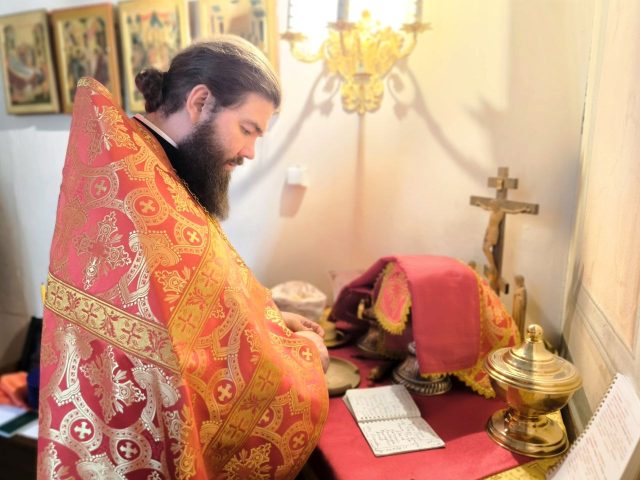 За Божественной литургией молился почетный настоятель храма митрополит Ставропольский и Невинномысский Кирилл. Богослужение возглавил настоятель храма иерей Тимофей Чайкин в сослужении духовенства подворья.